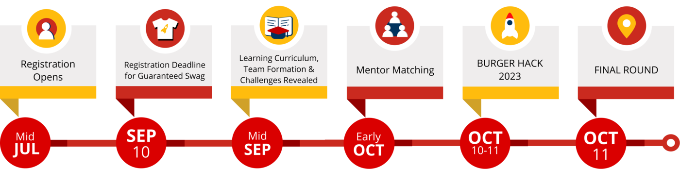 Participants will have the opportunity to walk away with the ULTIMATE bragging rights of being "Burger Hack Champions 🏆" AND receive a grand prize worth up to $3,000 USD with your team! Three grand prizes will be awarded! There will also be a number of runner-up prizes, raffles and giveaways! Space is limited on this exciting "digital first mission". You don't want to miss out, so sign-up today!